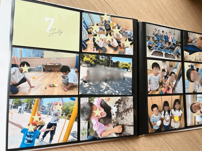 左上に月齢カードを入れるルールにすることで、全体が引き締まり、見返した時にとても見やすいですね!