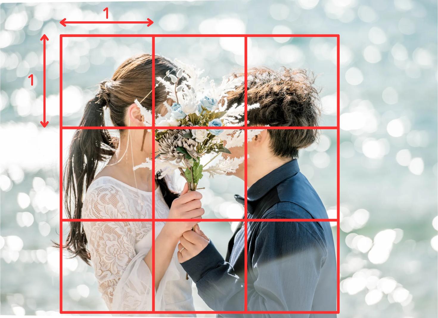 グリッドとは、1つの写真を格子状に分割してプリント・配置することです。ひとつひとつは小さいましかく写真でも、この方法なら大きくダイナミックに飾ることができるのです👀