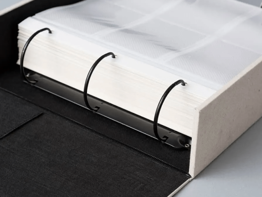 中身はリング式バインダーで、ページの入れ替えもカンタン♪